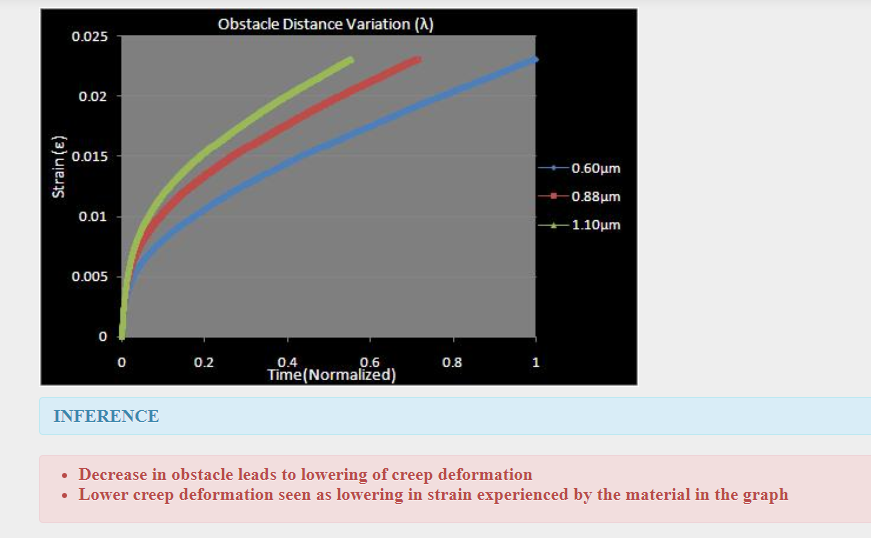Schematic diagram showing effect of obstacle distance on the creep deformation of a material